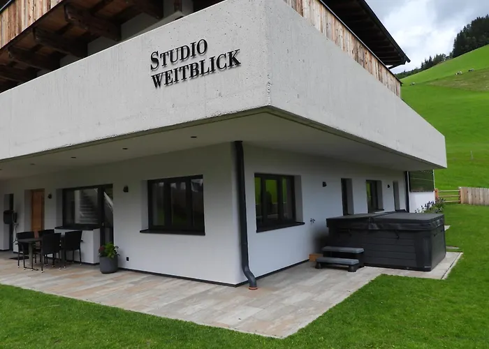 2-slaapkamer Studio Weitblick Appartement bevindt zich in de Hinterglemm wijk van Saalbach-Hinterglemm en trekt gasten met een bubbelbad en een sauna. Salzburg W.A. Mozart ligt op afstand van 95 km van het 100 m^2 grote appartement en Hinterglemm Reichkendl busstation is binnen 10 minuten te voet.